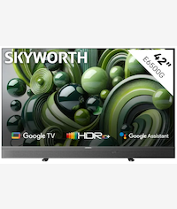 Skyworth 42-inch FHD Google TV with Speakers- offers vibrant Full HD visuals with a resolution of 1920 x 1080, perfect for modern home viewing. It features the Google TV interface, providing seamless access to popular apps like YouTube, Netflix, and Prime Video. The TV supports HDR10/HLG for enhanced picture quality and includes Google Assistant and Chromecast for easy voice control and screen mirroring. It also offers digital DVB-T2, Dolby Audio, and connectivity options such as 2x HDMI ports and 2x USB ports.
